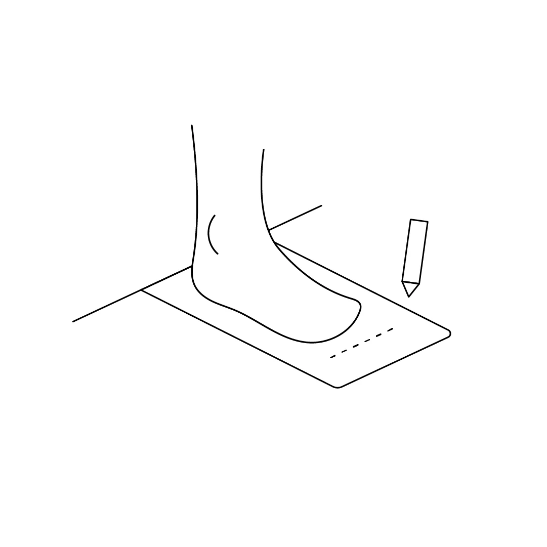 Tryck hälen ordentligt mot väggen och placera foten på papperet. Fördela din kroppsvikt naturligt, precis som när du står upp som vanligt