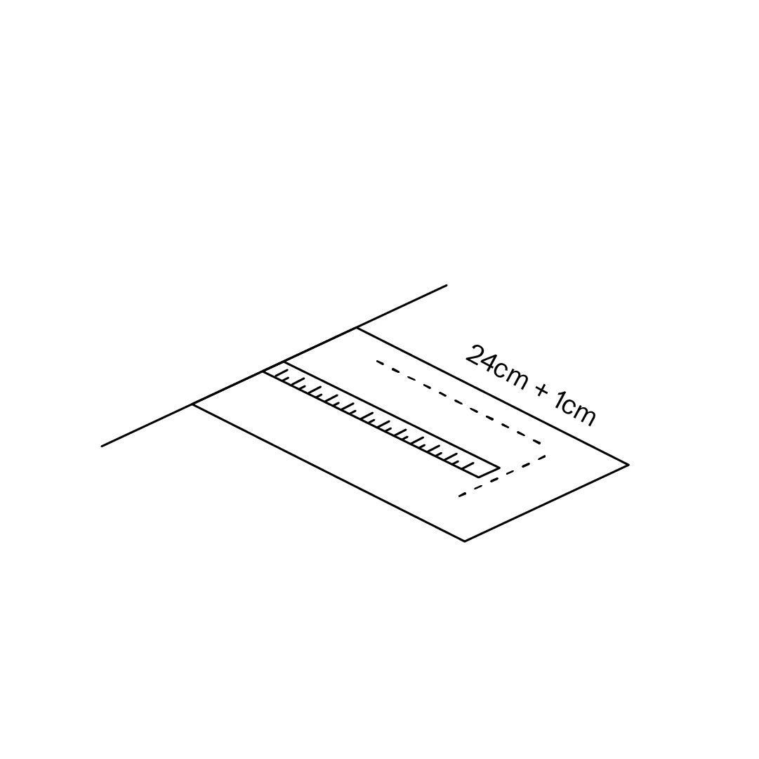 Mät avståndet från papperskanten (den som låg mot väggen) fram till strecket du har markerat. Lägg till 1 cm till det mått du får fram. Denna siffra är ditt ideala referensmått när du väljer storlek.
