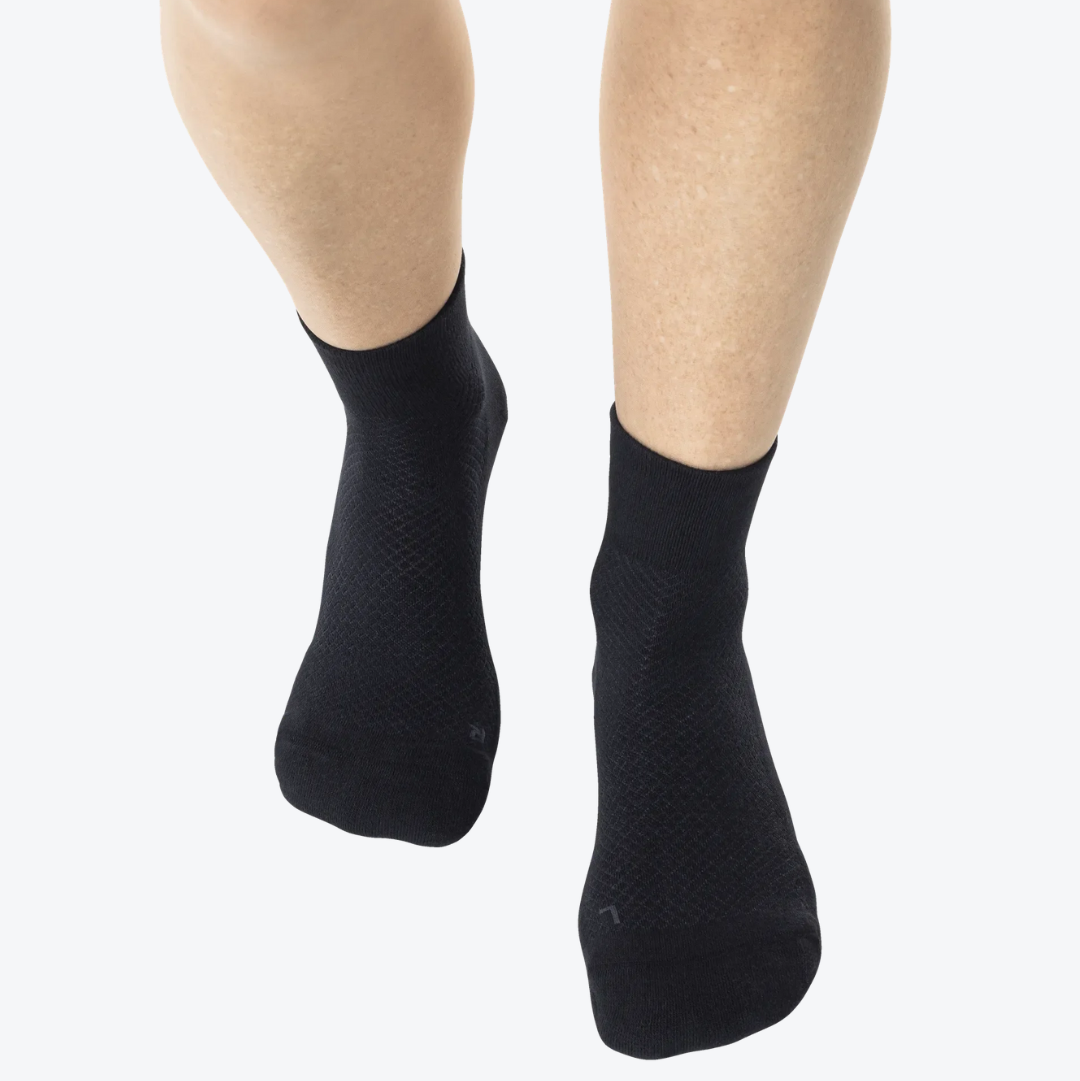 Sukka on valmistettu pehmeästä luomupuuvillasta ja vahvistettu verkkopaneeleilla paremman ilmanvaihdon takaamiseksi, pitäen jalkasi kuivina ja viileinä koko päivän. 360 asteen joustava tuki varmistaa, että sukka pysyy paikoillaan puristamatta tai liukumatta. Täydellinen niille, jotka haluavat yhdistää paljasjalkaisen tunteen lisäpehmustukseen ja tukeen.